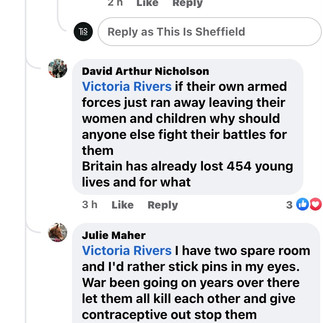Whilst all of this was going on a 5 year old, from Afghanistan fell from a hotel in Sheffield and died, somebody wrote a racist remark about this on social media, they were caught and arrested. Both The Star and Sheffield Online wrote about this, saying how disgusting it was that somebody should write vile comments online, like they haven’t read comments on their own posts about Afghan’s seeking safety. C’mon guys...